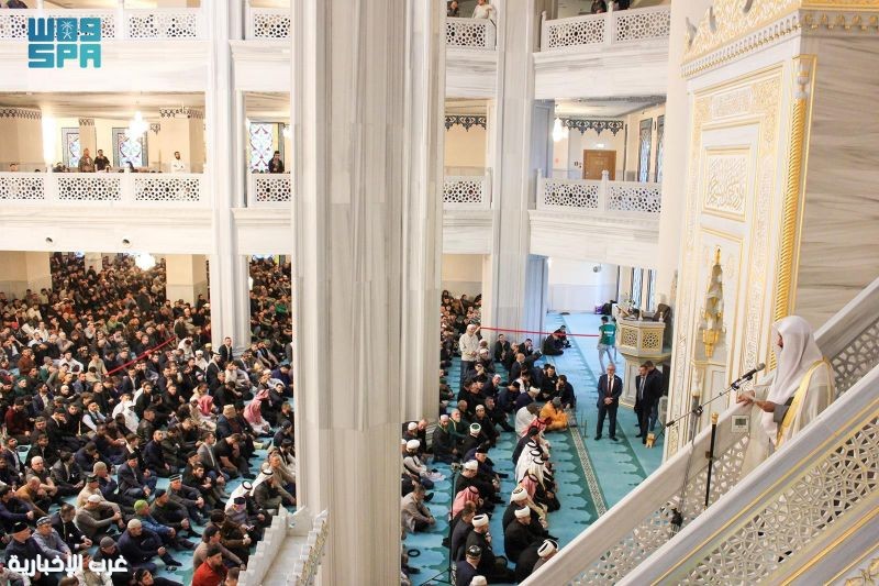 المصدر - واس ألقى إمام وخطيب المسجد النبوي الشريف فضيلة الشيخ الدكتور عبدالله بن عبدالرحمن البعيجان خطبة الجمعة اليوم، في المسجد الجامع بالعاصمة الروسية موسكو، بحضور تجاوز خمسة عشر ألف مصلٍّ من مختلف الجاليات الإسلامية، وبحضور مفتي روسيا الاتحادية الشيخ راوي عين الدين، وسفير خادم الحرمين الشريفين لدى روسيا الاتحادية الأستاذ سامي بن محمد السدحان، وعدد من الشخصيات الدينية والرسمية.
